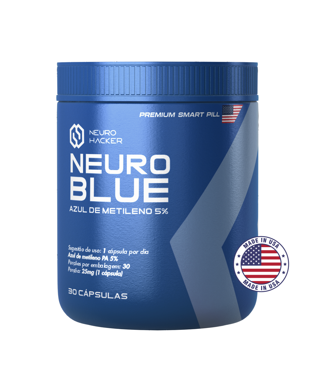Com matéria-prima 100% importada e grau farmacêutico, o NeuroBlue é o primeiro nootrópico oral com azul de metileno em sua forma ideal: por via digestiva, onde a absorção é mais eficiente e o efeito é mais estável e prolongado.