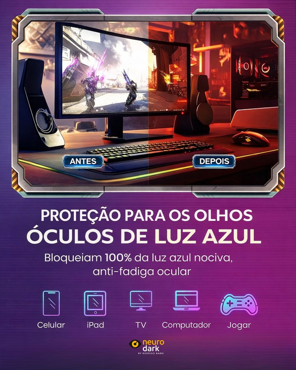 Redução da Fadiga Ocular: Nossos óculos ajudam a minimizar o cansaço nos olhos, permitindo que você trabalhe ou se divirta por mais tempo, sem desconforto.